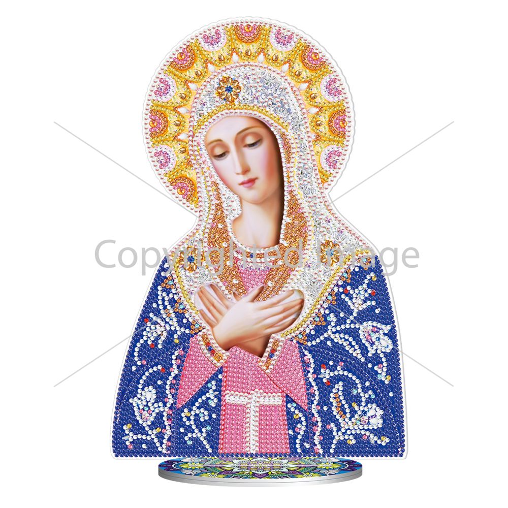 Алмазна мозаїка Strateg ПРЕМІУМ Ікона Божої Матері на підставці розміром 30х30 см (BJP202)