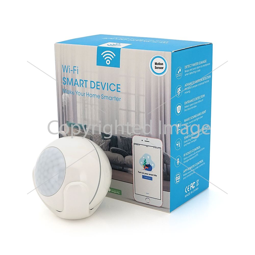 • Wifi датчик руху бездротової через невеликі розміри та відсутність будь-яких проводів швидко монтується на будь-який тип поверхонь. При установці необхідно переконатися, що в місці установки датчика є хороший сигнал Wifi від роутера.