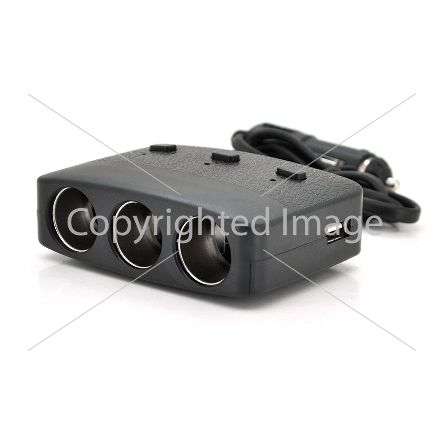 АЗП розгалужувач Olesson 1636, 12V-3 * 12V + 2 * USB, Black, Blister