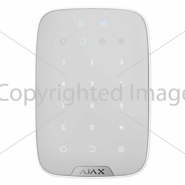 Ajax KeyPad Plus — бездротова сенсорна клавіатура для керування системою безпеки Ajax за допомогою захищених безконтактних карток та брелоків. Забезпечує дальність зв'язку з Hub-ом до 1700 метрів по радіопротоколу Jeweller, який використовує фрейми для синхронізації сеансів зв'язку, автентифікацію для запобігання підміні та шифрування для захисту від злому. Робочі частоти 8680-8686 МГц. Встановлюється у приміщенні біля вхідних дверей для швидкого доступу до клавіатури. Живлення: 4 батареї AA, 1.5 Ст.