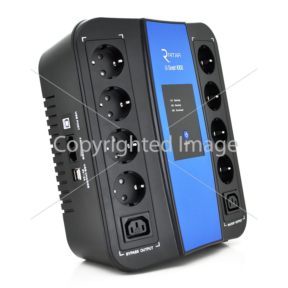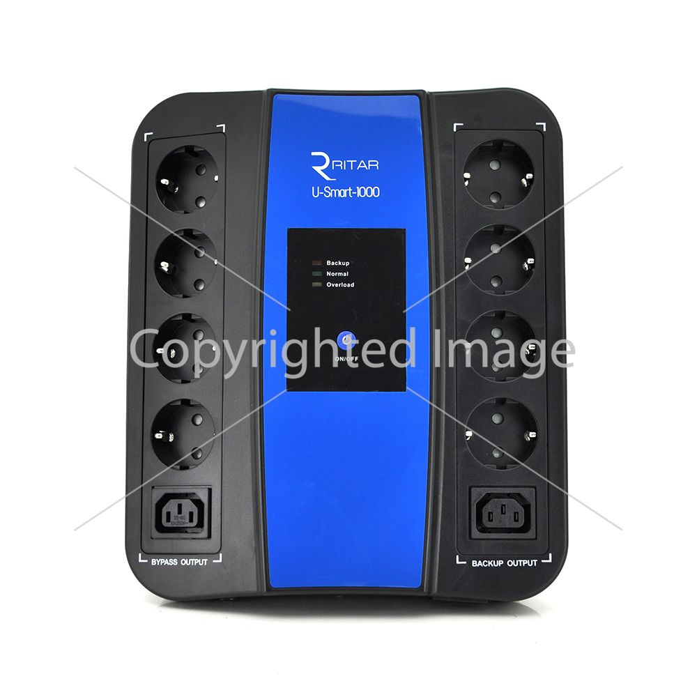 ДБЖ Ritar U-Smart-1000 (600W), LED, AVR, 3st, 8xSCHUKO socket, 1x12V9Ah, USB x2, RJ45, plastik Case