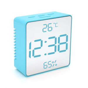 Електронний годинник VST-887Y Дзеркальний дисплей, з датчиком температури та вологості, будильник, живлення від кабелю USB, Blue