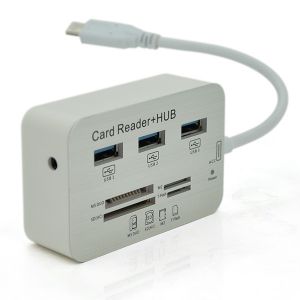 Хаб Type-C алюмінієвий, 3 порти USB 3.0 + Card Reader, 20 см, White, Пакет