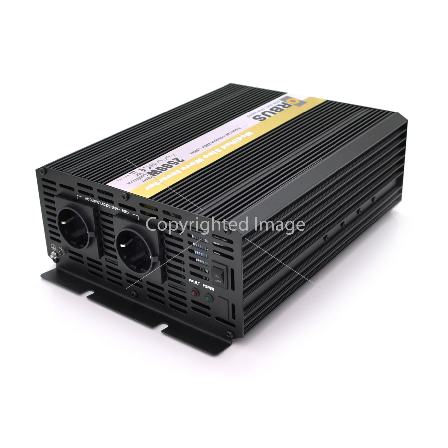 Інвертор напруги ORBUS ORMS2500 (2500Вт), 12/220V, approximated, 2 Shuko, 2 клемні дроти, 9 запобіжників, Box.Q20