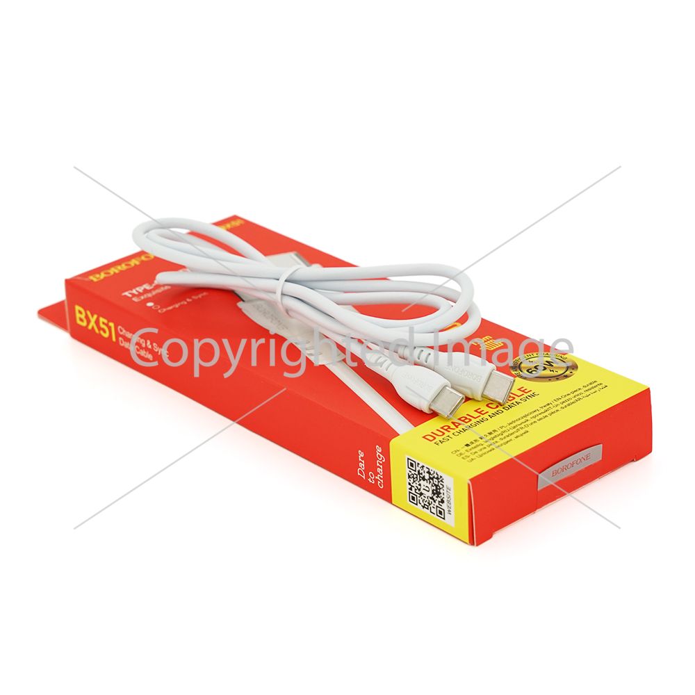 Кабель Borofone BX51, Type-C-Type-C, 3A, довжина 1м, White, BOX