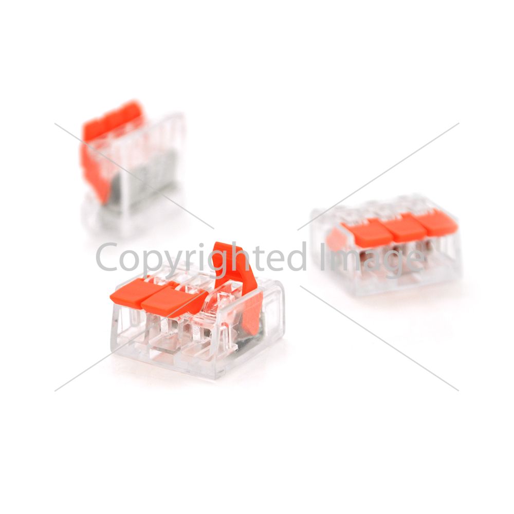 Клема з натискними затискачами 3-дротова WAGO K221-413 для розподільчих коробок, 3-pin, прозоро-помаранчева