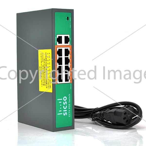 Комутатор POE SICSO 48V з 8 портами POE 100Мбит + 2 порт Ethernet (UP-Link) 100Мбит, c посиленням сигналу до 250м, корпус -метал, Silver, БП вбудований, Q30