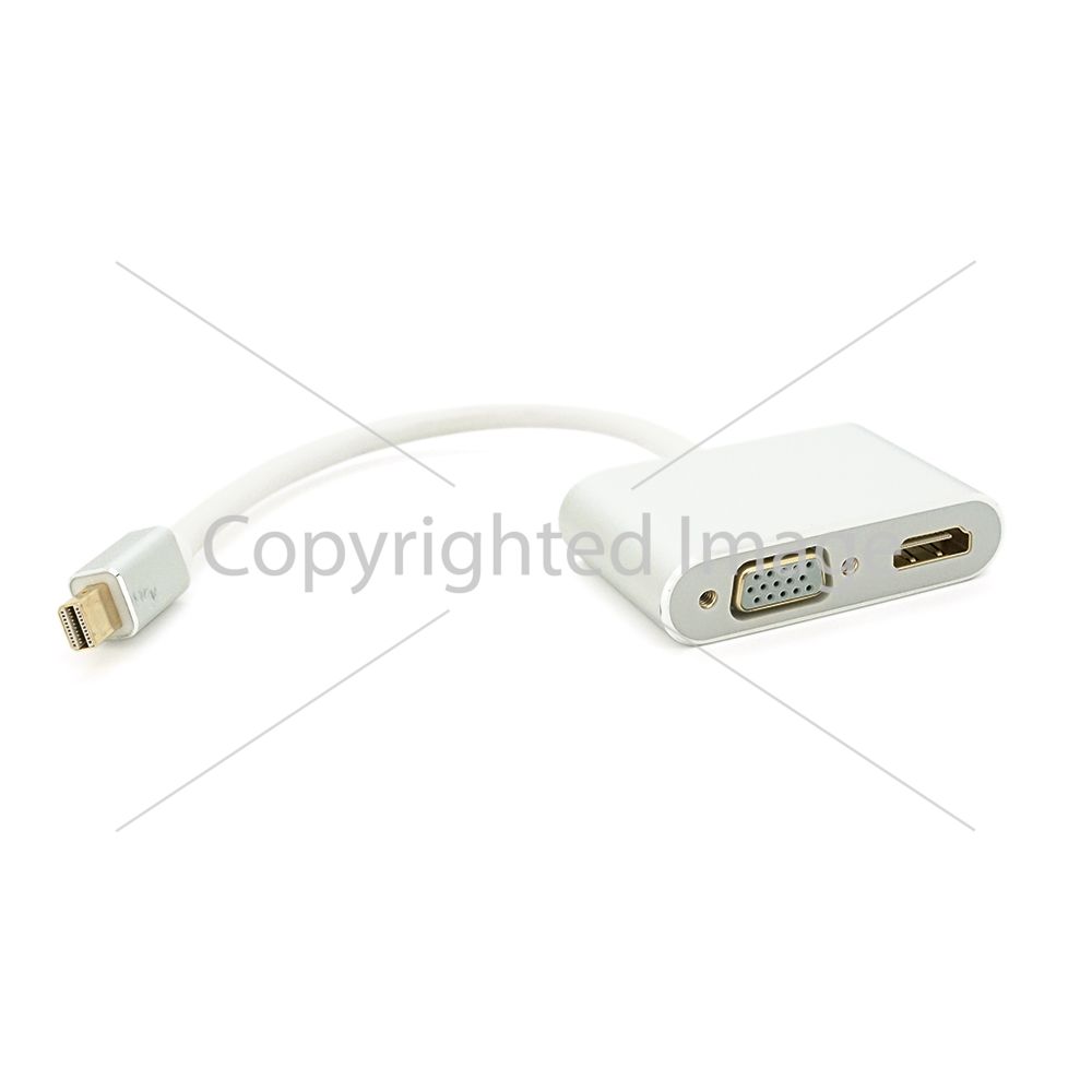 Конвертер mini Display Port (папа) на HDMI/VGA(мама) 30cm, Silver, 4K/2K, Пакет