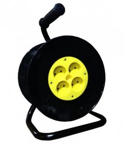Котушка для подовжувача до 50м без кабелю на 4 гнізда без контакту, контактна група - латунь (Жовта)