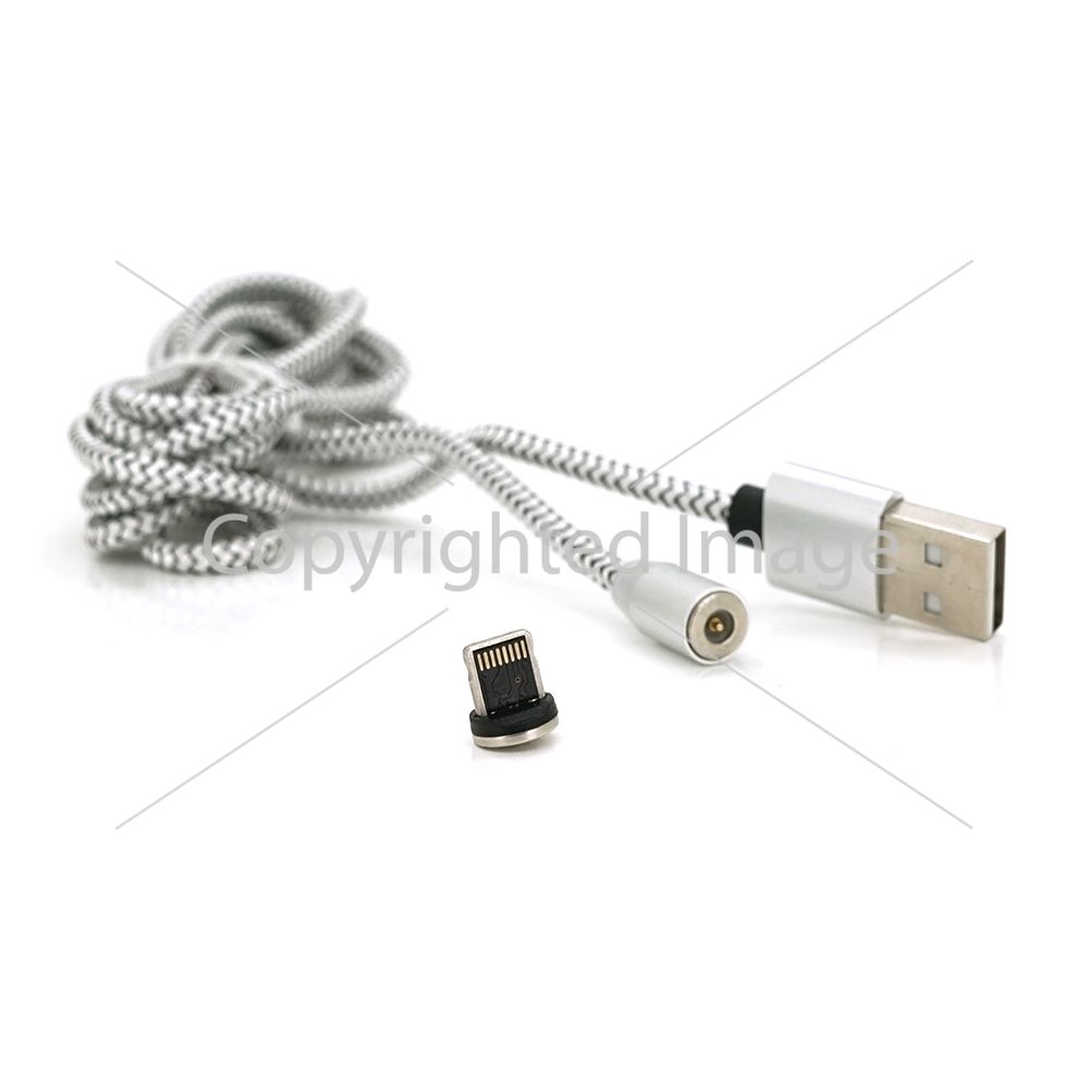Магнітний кабель PiPo USB 2.0 /Lighting, 2m, 2А, тканинна оплетка, броньований, знімач, Silver, BOX