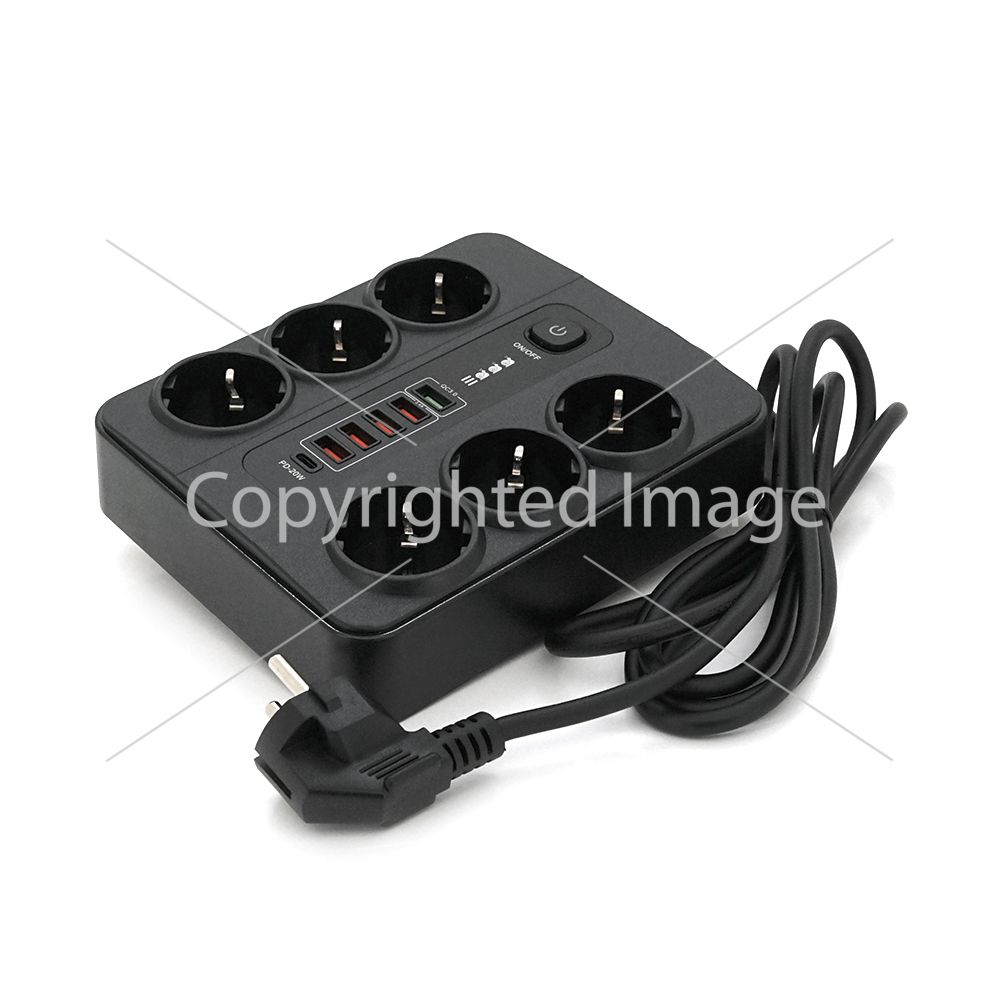 Мережевий фільтр BLK-11, 6 Розеток + 4 * USB + QC3.0 + PD18W, 2 м, перетин 3х0, 75мм, Black, Box