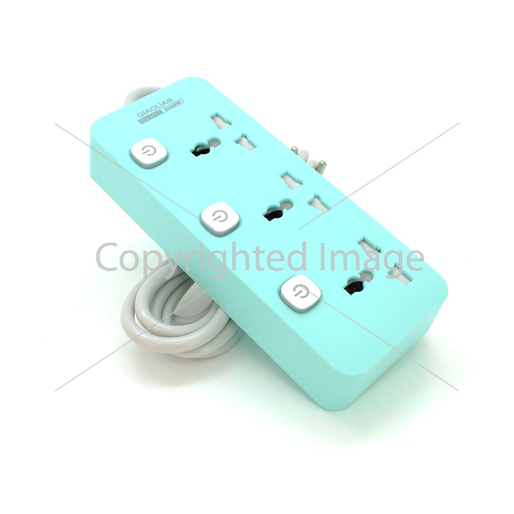 Мережевий фільтр QiaoLian YT-60, 3 Розетки, 2 м, перетин 3х0, 75мм, Blue, Blister