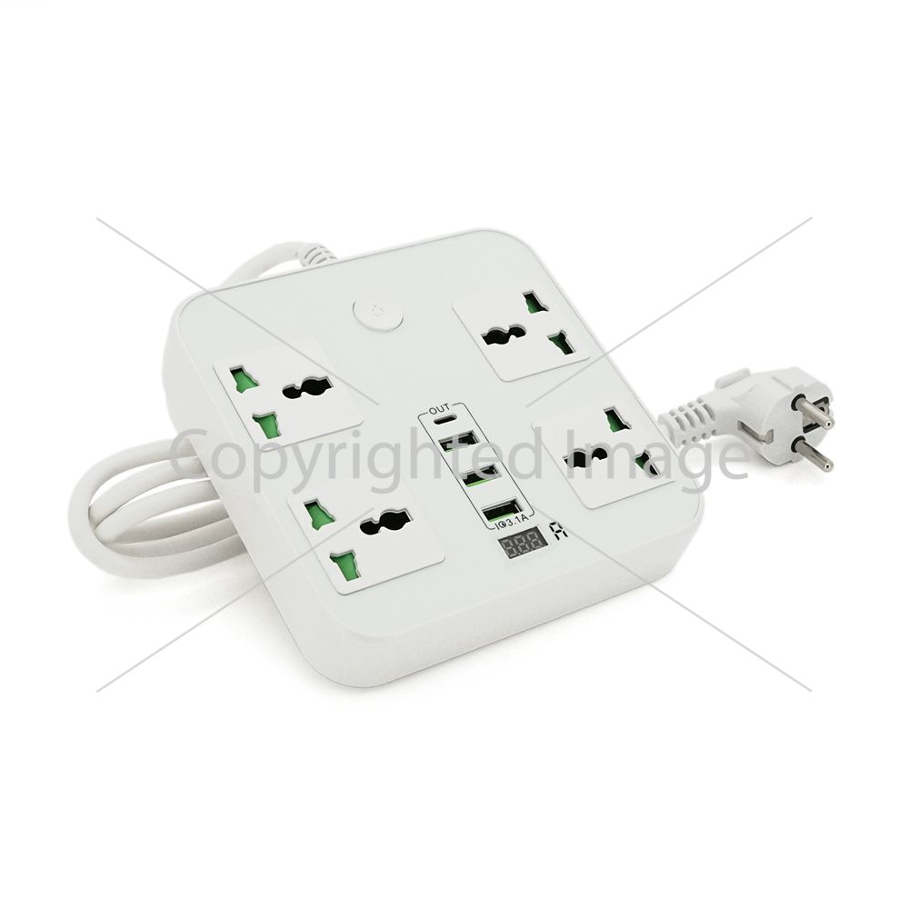 Мережевий фільтр ТВ-Т90, 4 розетки + 3 USB, 2 м, перетин 3х0, 75мм, 3000W, White, Box