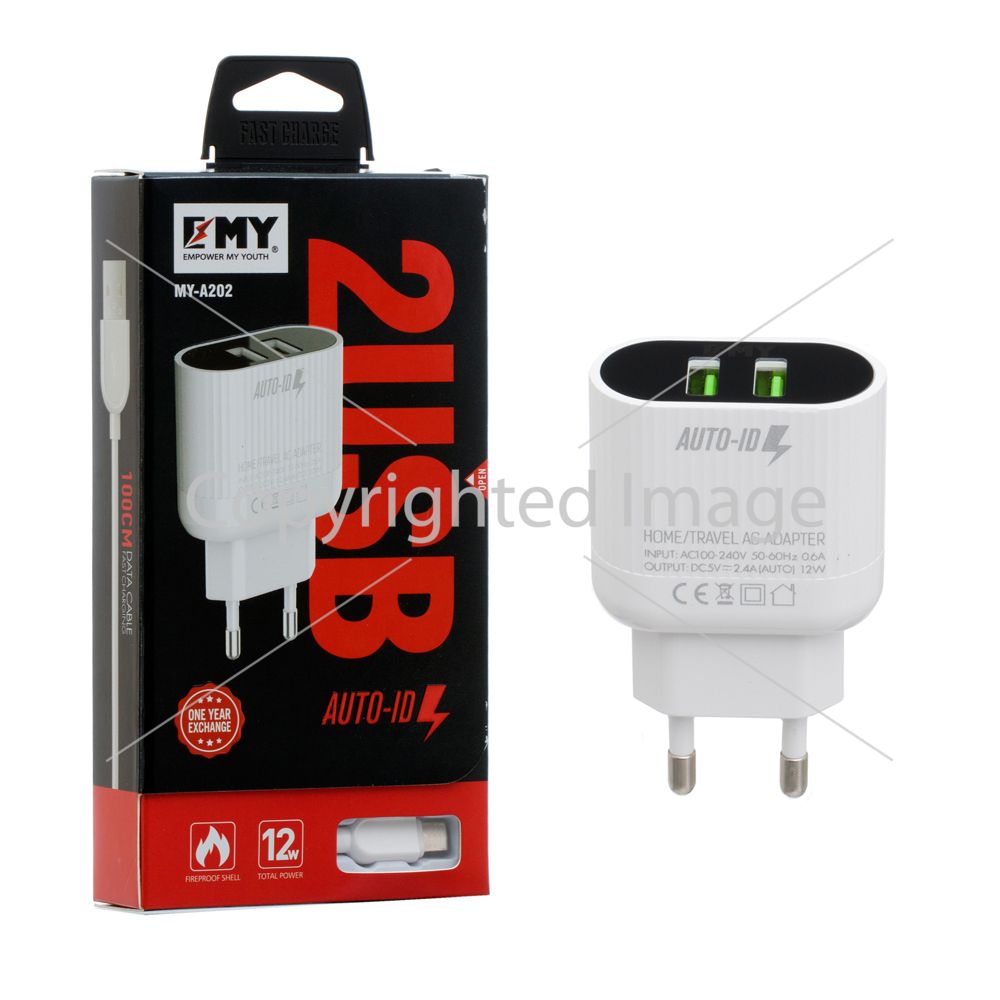 Набір 2 в 1 СЗУ With Micro-Usb Cable 110-240V MY-A202, 2 x USB, 5V / 12W, Output: 5V / 2.4A, White, Blister- box, Q25