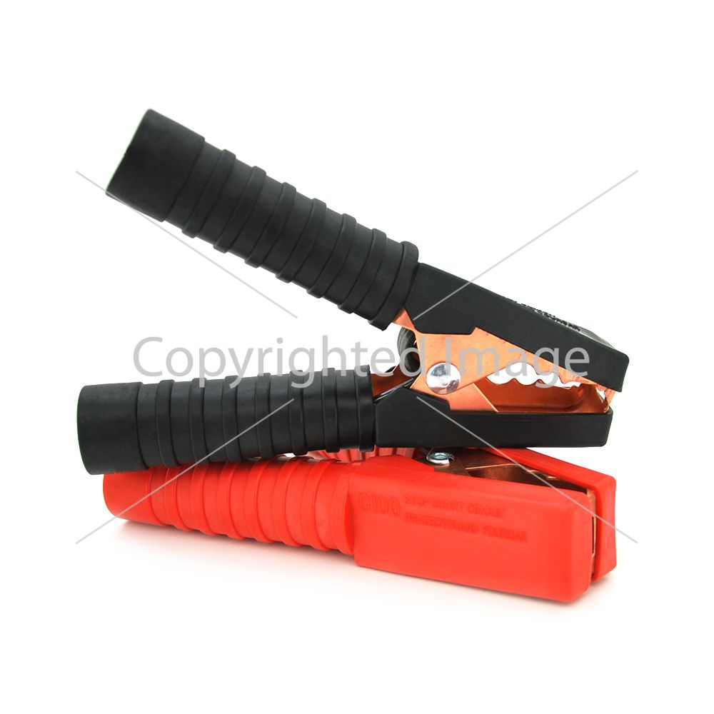Набір акумуляторних затисків "крокодили" чорний + червоний 100А 135мм (щільний гумовий, рифлений кожух), з мідним покриттям, Пакет, Q2