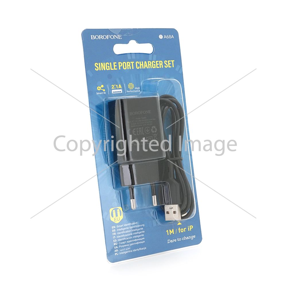 Набір BOROFONE BA68A СЗУ 1xUSB+ кабель iPhone, 2.1A, 1м, Black, Blister-box