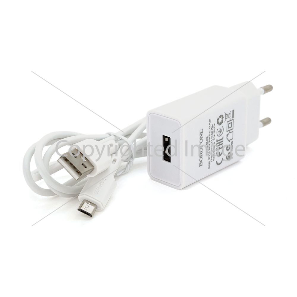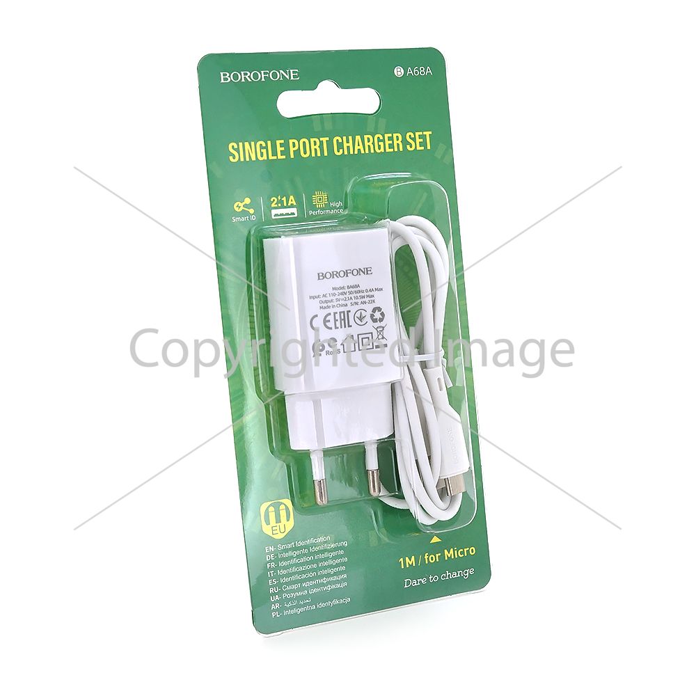 Набір BOROFONE BA68A СЗУ 1xUSB+ кабель Micro, 2.1A, 1м, White, Blister-box