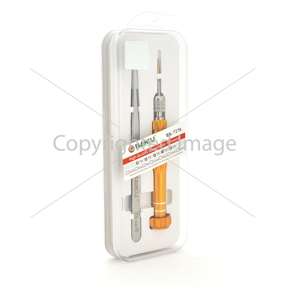 Набір інструментів BAKKU BK-7270 (T4, T5, T6, зведена 0.8, хрест 1.5, пінцет), Blister