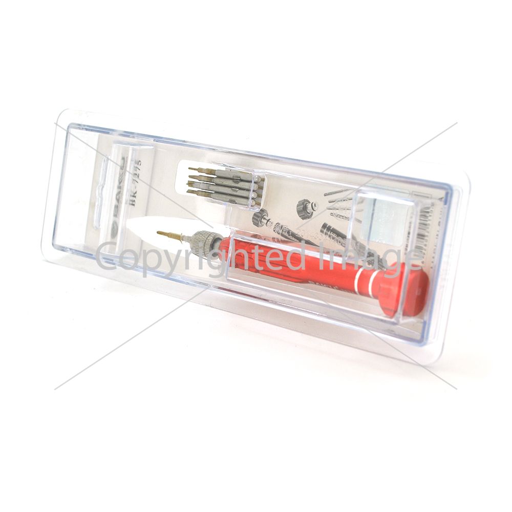 Набір Baku BK-7275 підійде для роботи в сервісних майстерень по ремонту смартфонів і іншої електронної техніки, стане в нагоді в годинниковій майстерні і вдома для підкручування дрібних гвинтиків. У набір входить 5 наконечників з різними шліцами. Три шліца TORX T4, T5, T6, які призначені для гвинтів мобільних телефонів і комп'ютерів.