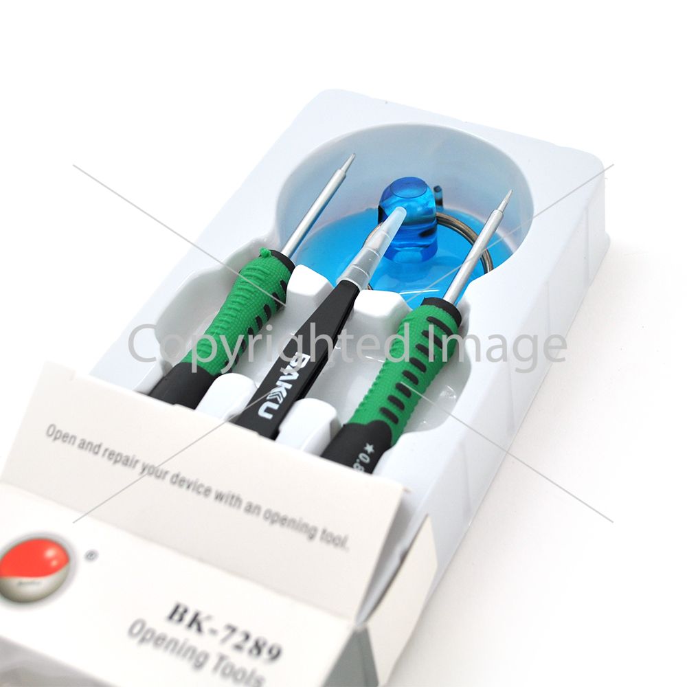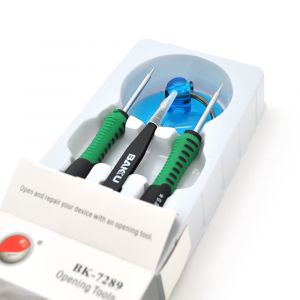 Набір інструментів BAKKU BK-7289-A для iPhone (+1.3, зірка 0.8, пінцет прямий, присоска), Blister-box