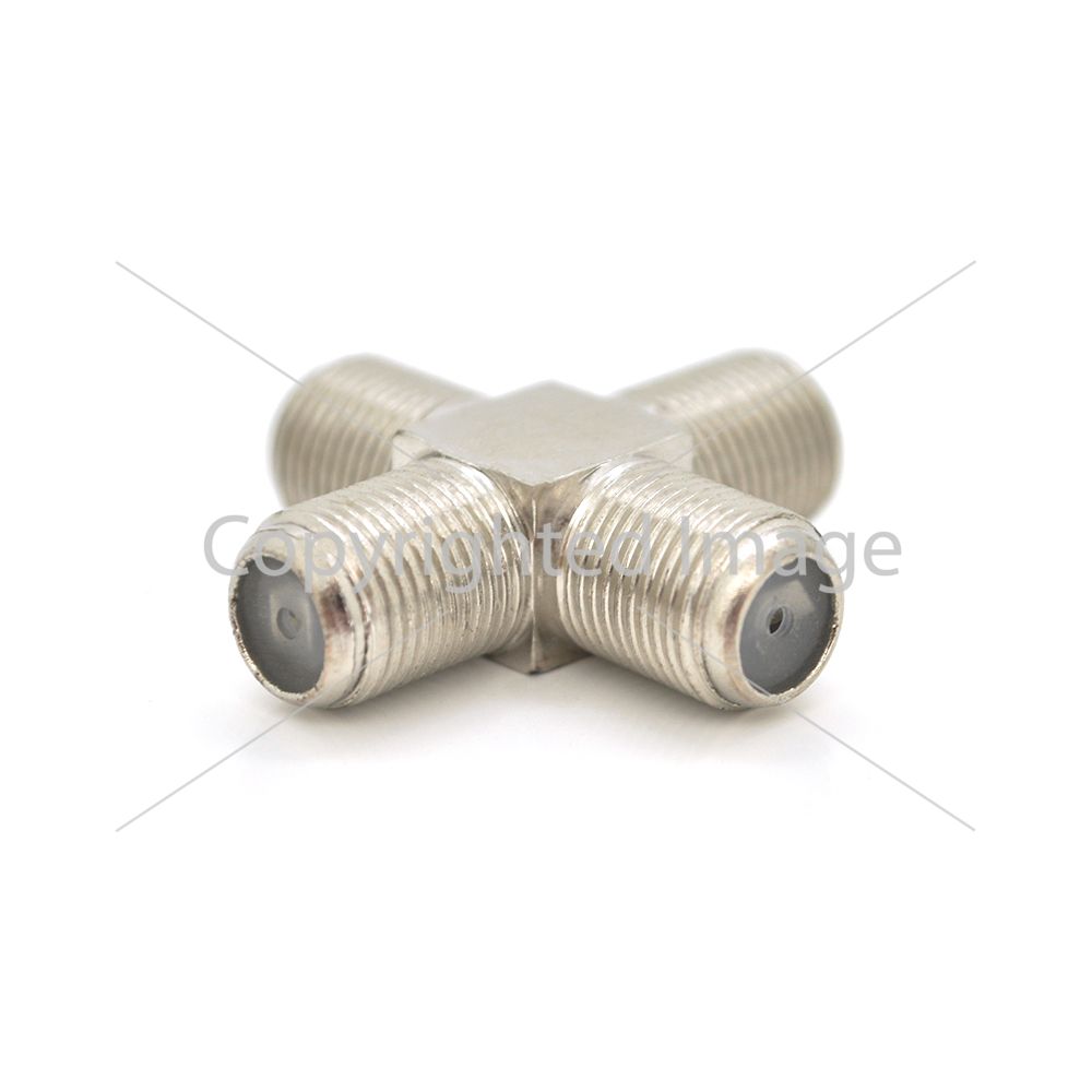 Перехідник 4F-F гнізда – створений для з'єднання коаксіальних проводів хвильовим опором 50 або 75 Ом, на кінцях яких розташовані штекери F-роз'єму. Простими словами, поділяє сигнал на три частини від одного джерела. Швидко, якісно без паяння.