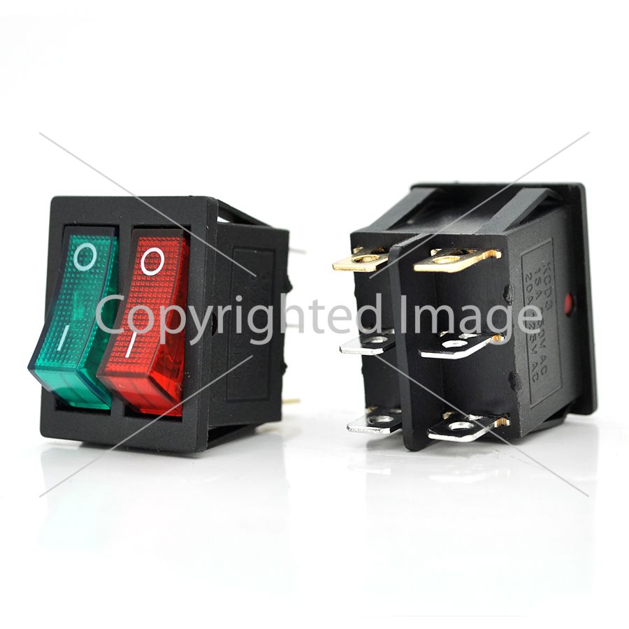 Перемикач ON-ON KCD4-212N, 250VAC / 15A, 6 контактів, Red/Green, Q50 ( 245*170*41 ) 0,75 кг