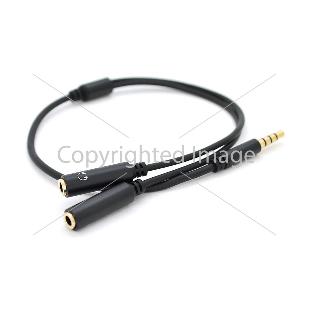 Розгалужувач аудіо VEGGIEG AM2-B для навушників і мікрофону, Jack 3.5 (тато) 4 pin => 2 * Jack 3.5 (мама) 3 pin, 0.2m, круглий, Пакет