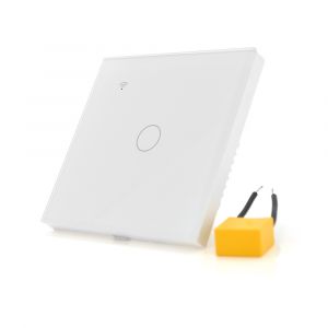 Сенсорний вимикач без заземлення + WiFi керування, одноканальний, білий, 86х86х35мм