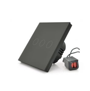Сенсорний вимикач без заземлення + WiFi керування, трьохканальний, чорний, 86х86х35мм