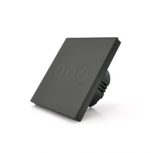 Сенсорний вимикач з заземленням + WiFi керування, трьохканальний, чорний, 86х86х35мм