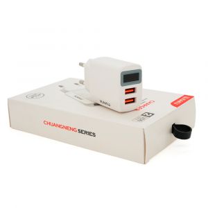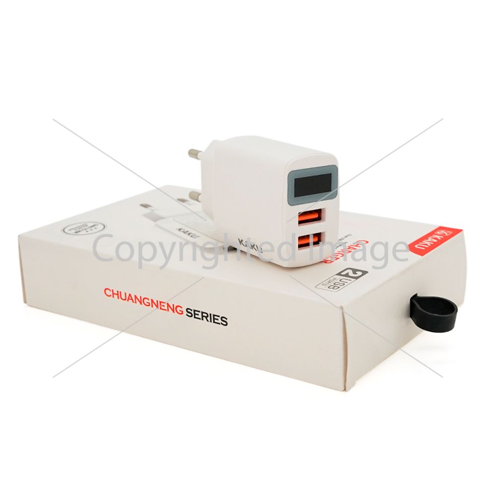 СЗУ AC100-240V iKAKU KSC-180 CHUANGNENG, 2xUSB, 2.4A, з цифровим дисплеєм, White, Box
