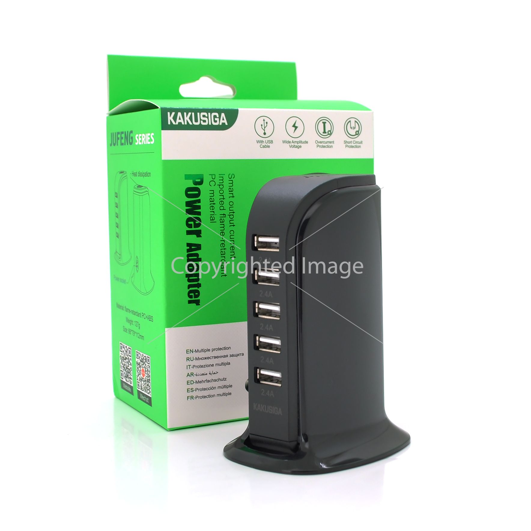 СЗУ AC100-240V iKAKU KSC-741 Jufeng Series Desktop, 5xUSB, Output: DC5V/2.4A (12W), Black, Box