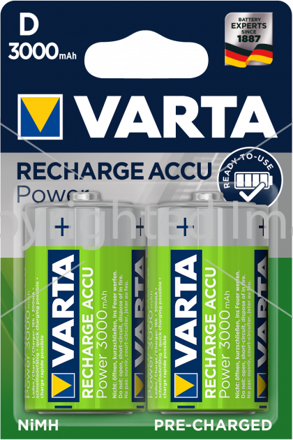 Акумулятор TYPE D VARTA RECHARGEABLE ACCU 3000mAh (2шт/уп) Ni-MH (56720101402) (4008496550777)
