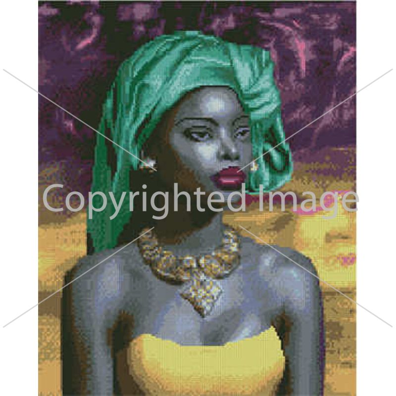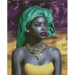 Алмазна картина Strateg ПРЕМІУМ Африканка в зеленому платку розміром 40х50 см (L-229)