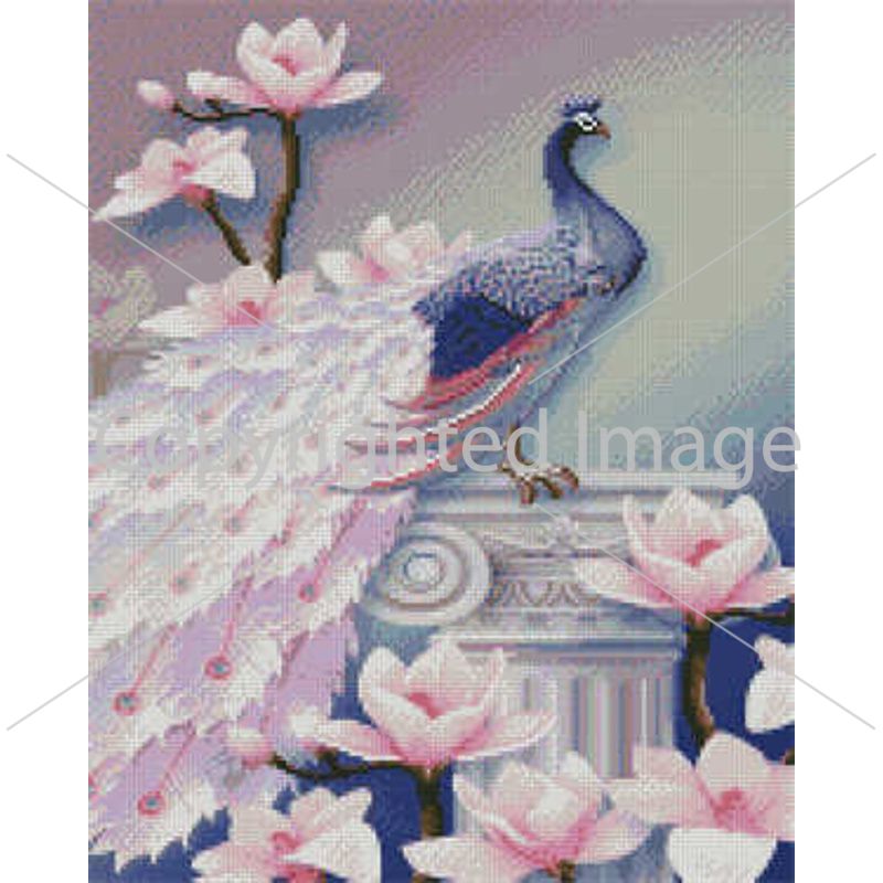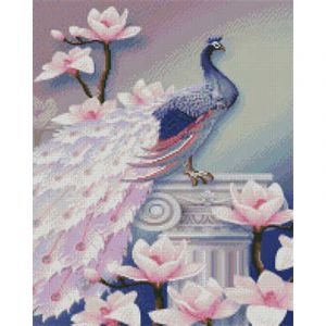 Алмазна картина Strateg ПРЕМІУМ Павич та магнолії розміром 40х50 см (L-224)