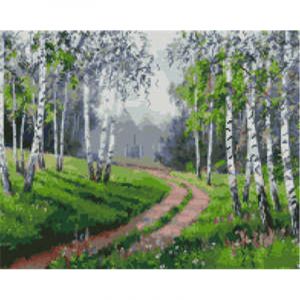 Алмазна картина Strateg ПРЕМІУМ Стежка серед беріз розміром 40х50 см (L-445)