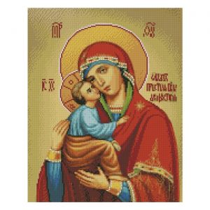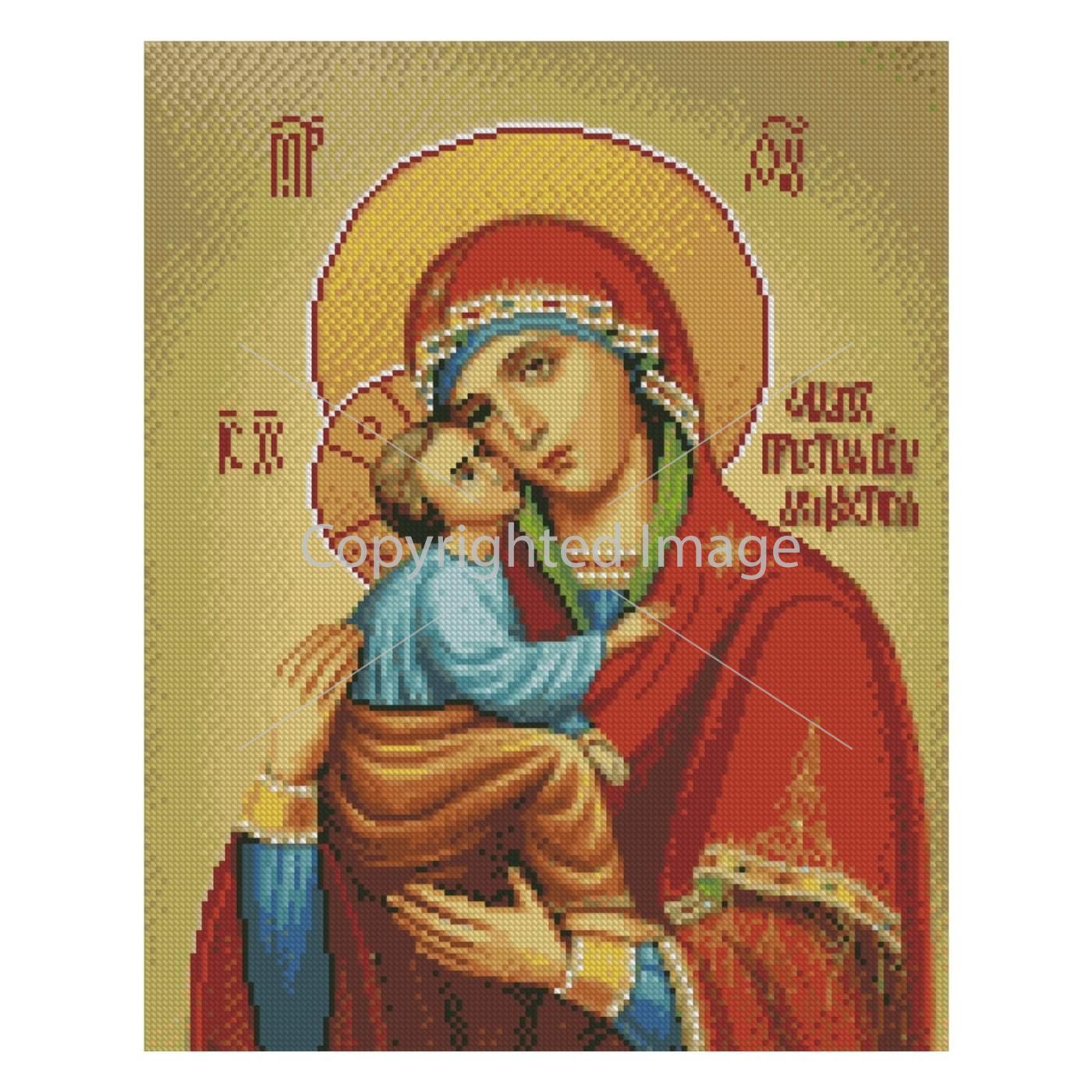 Алмазна мозаїка Strateg ПРЕМІУМ Акафістна ікона Пресвятої Богородиці 40х50 см FA40821