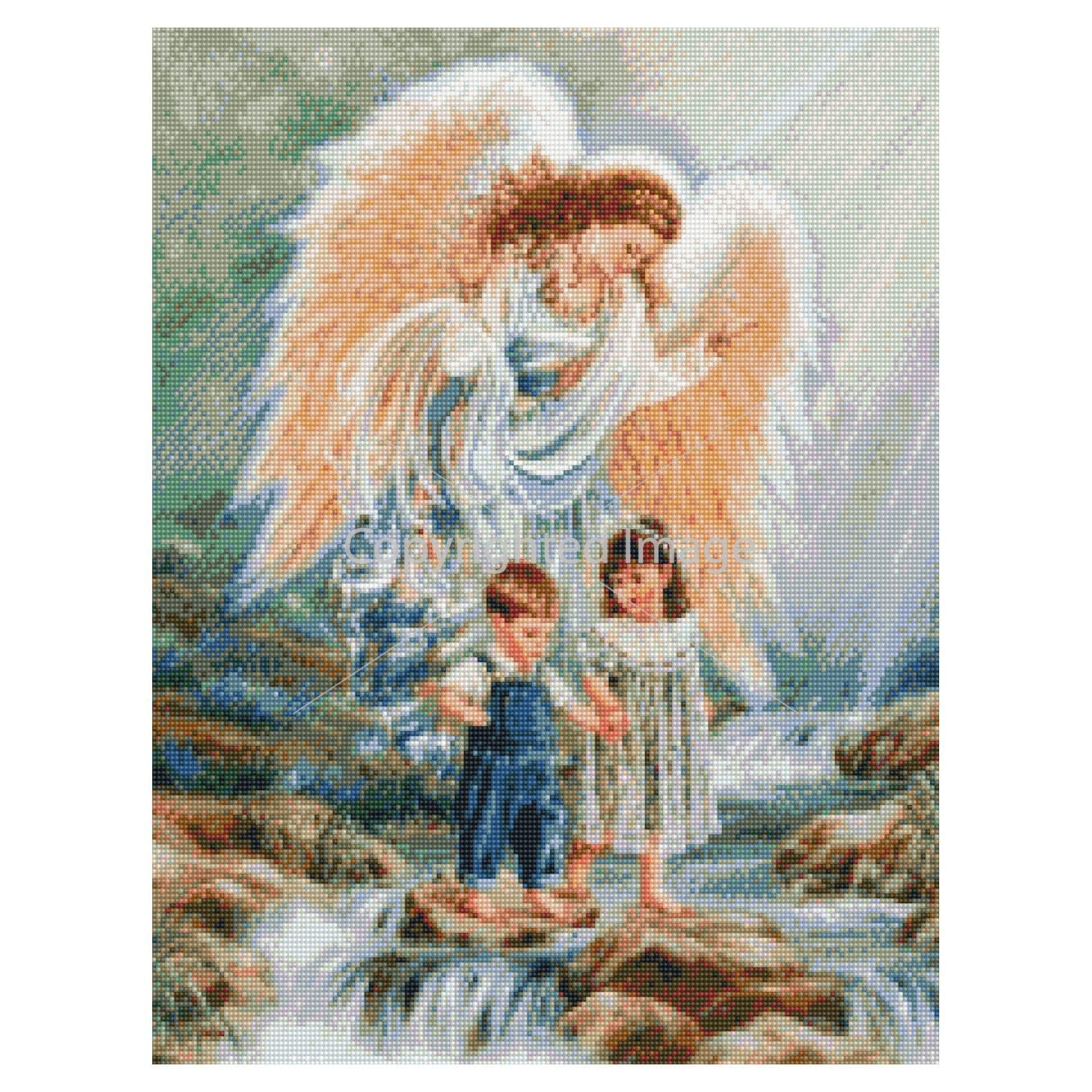 Алмазна мозаїка Strateg ПРЕМІУМ Ангел над дітьми 50х60 см HA0005