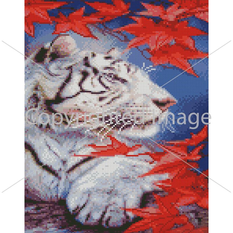 Алмазна мозаїка Strateg ПРЕМІУМ Білий тигр розміром 30х40 см (KB053)