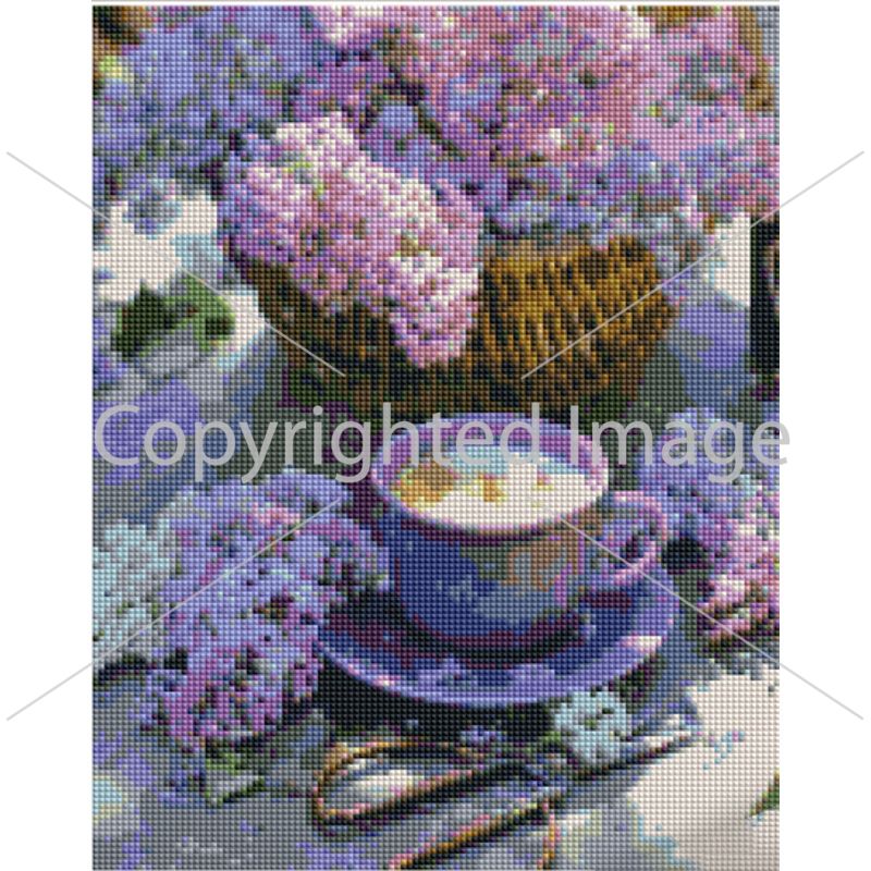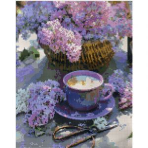 Алмазна мозаїка Strateg ПРЕМІУМ Бузок та кава розміром 30х40 см (KB113)