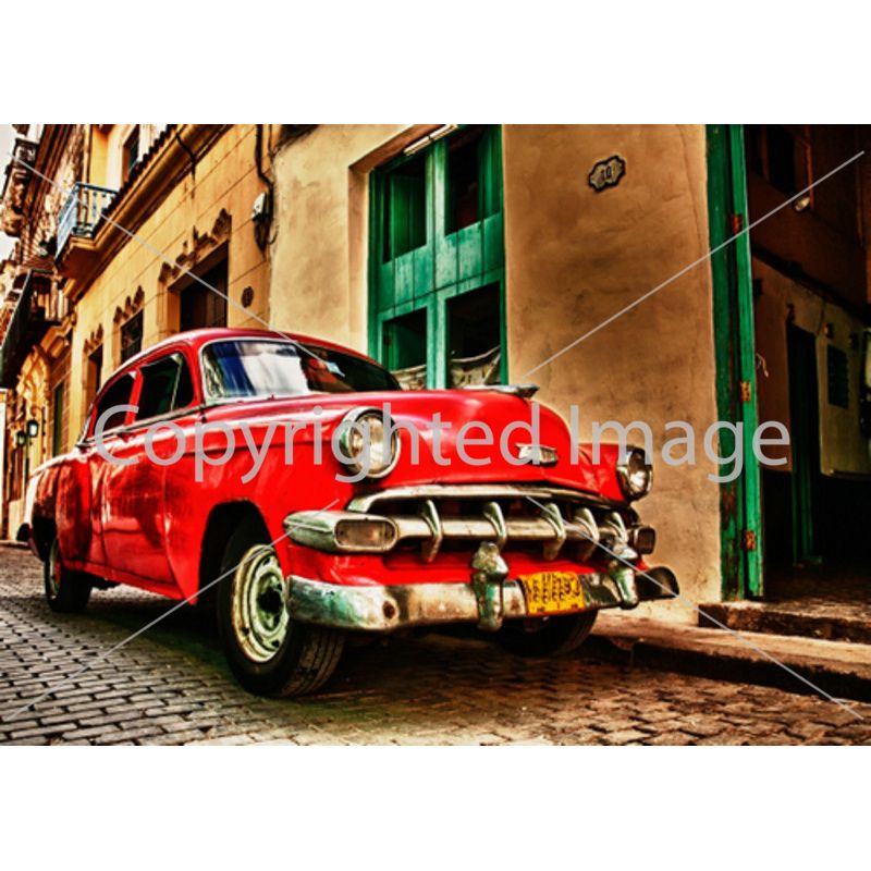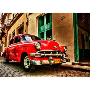 Алмазна мозаїка Strateg ПРЕМІУМ Червона ретро машина без підрамника розміром 30х40 см (GD86099)