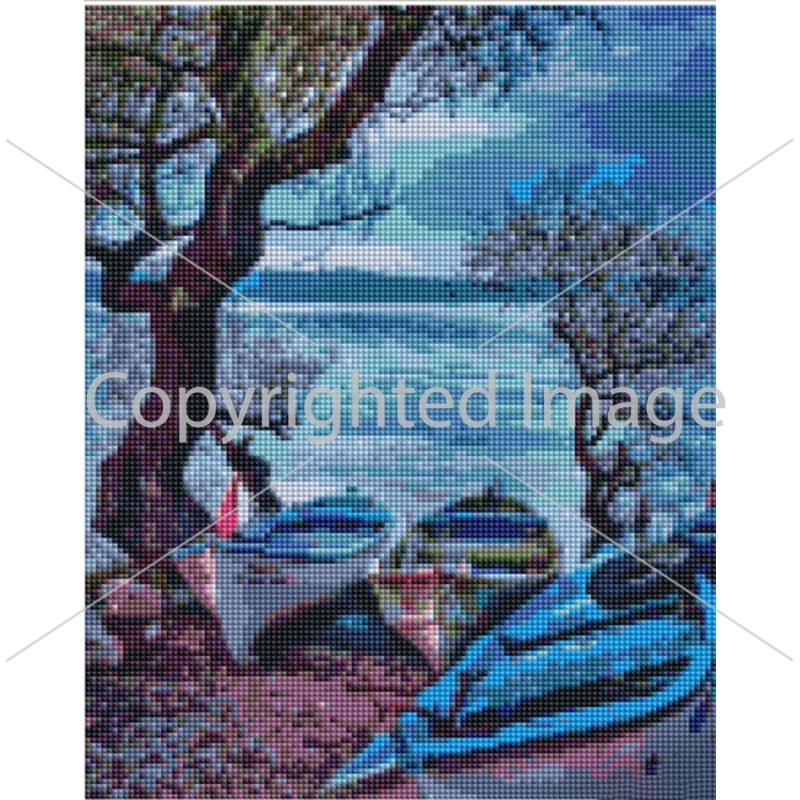 Алмазна мозаїка Strateg ПРЕМІУМ Човники на березі розміром 30х40 см (KB127)