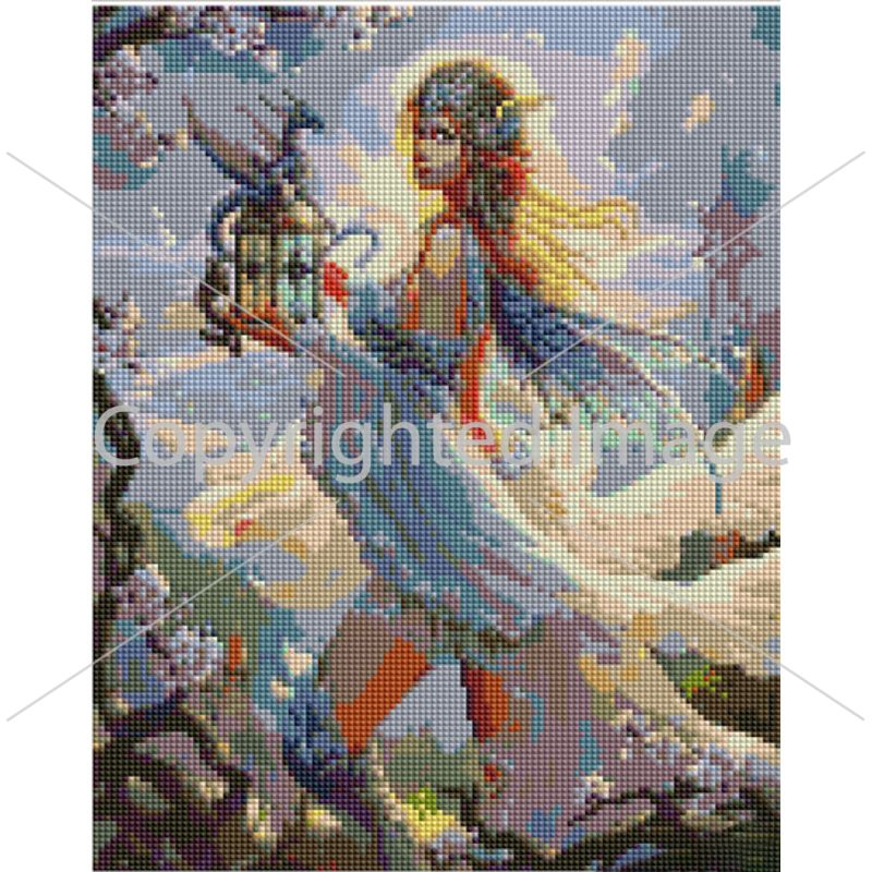 Алмазна мозаїка Strateg ПРЕМІУМ Дічина з драконом розміром 30х40 см (KB081)