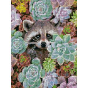 Алмазна мозаїка Strateg ПРЕМІУМ Єнотик у квітках 30х40 см HX232