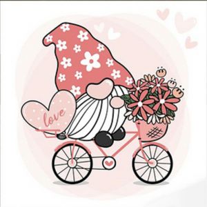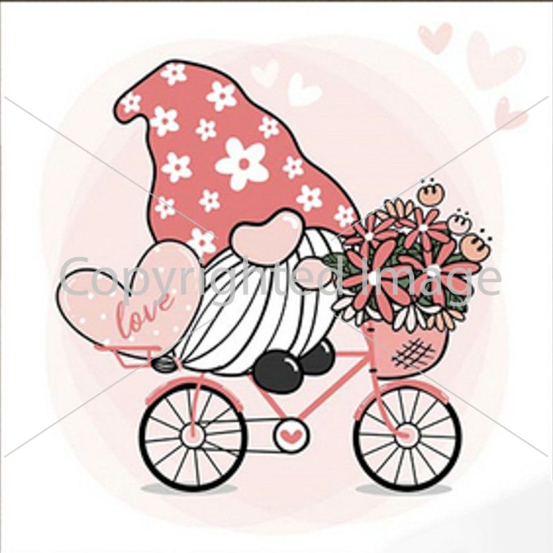 Алмазна мозаїка Strateg ПРЕМІУМ Гномик з квітами на велосипеді розміром 30х30 см (ME13826)