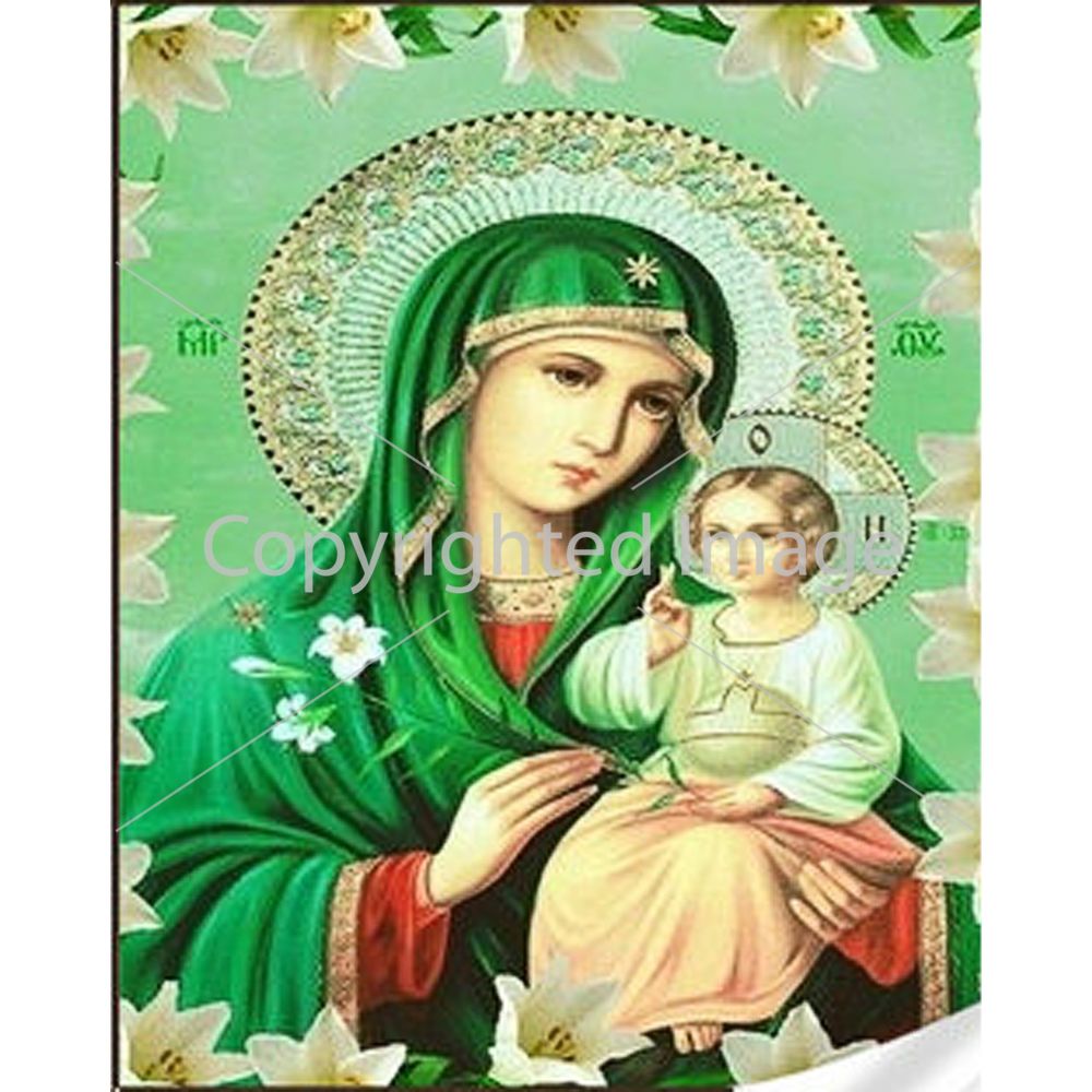 Алмазна мозаїка Strateg ПРЕМІУМ Ікона Божої Матері Нев'янучий цвіт розміром 30х40 см (GM86838)