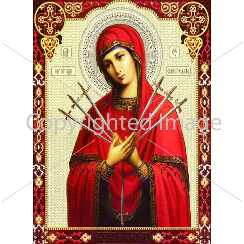 Алмазна мозаїка Strateg ПРЕМІУМ Ікона Семистрільна без підрамника розміром 50х65 см (SGK75717)