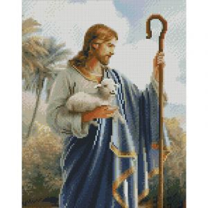 Алмазна мозаїка Strateg ПРЕМІУМ Ісус з ягням розміром 30х40 см (KB005)