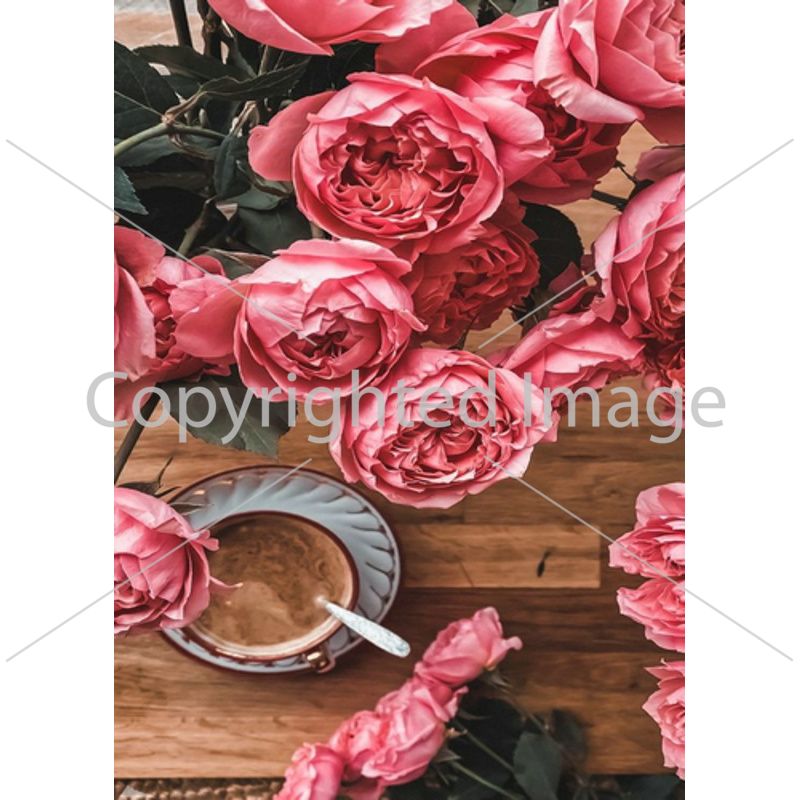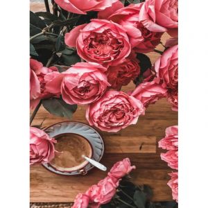 Алмазна мозаїка Strateg ПРЕМІУМ Кава з рожевими трояндами без підрамника розміром 30х40 см (GD86095)