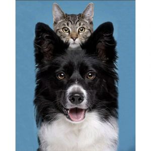Алмазна мозаїка Strateg ПРЕМІУМ Кіт і пес розміром 30х40 см (HEG86052)